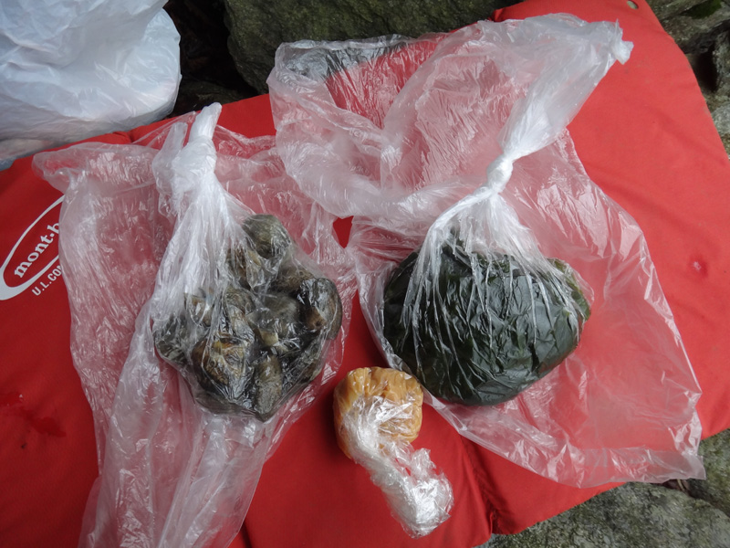 行動食はいつもと同じだけ持っているが、主食はおにぎり1つとインスタントラーメン1つ、切り餅1つ。