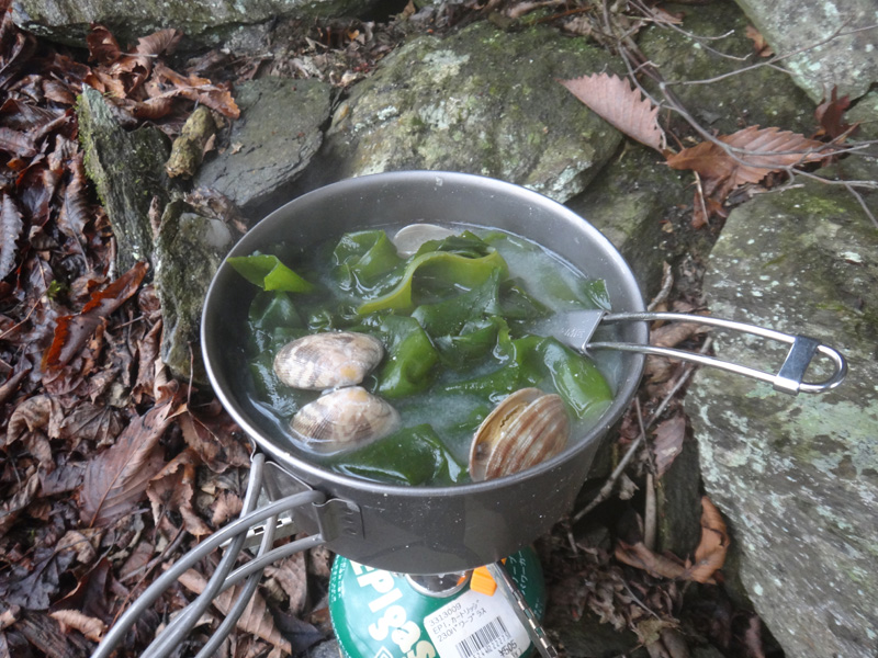さっそく中に入り、ランチタイム。 お湯を沸かし、コーンスープを飲み、餅入りラーメンを食べる。 暖かくて幸せだ。