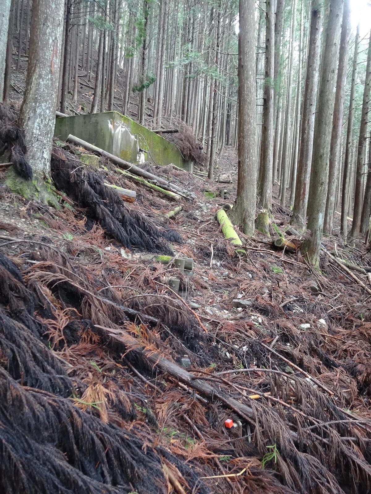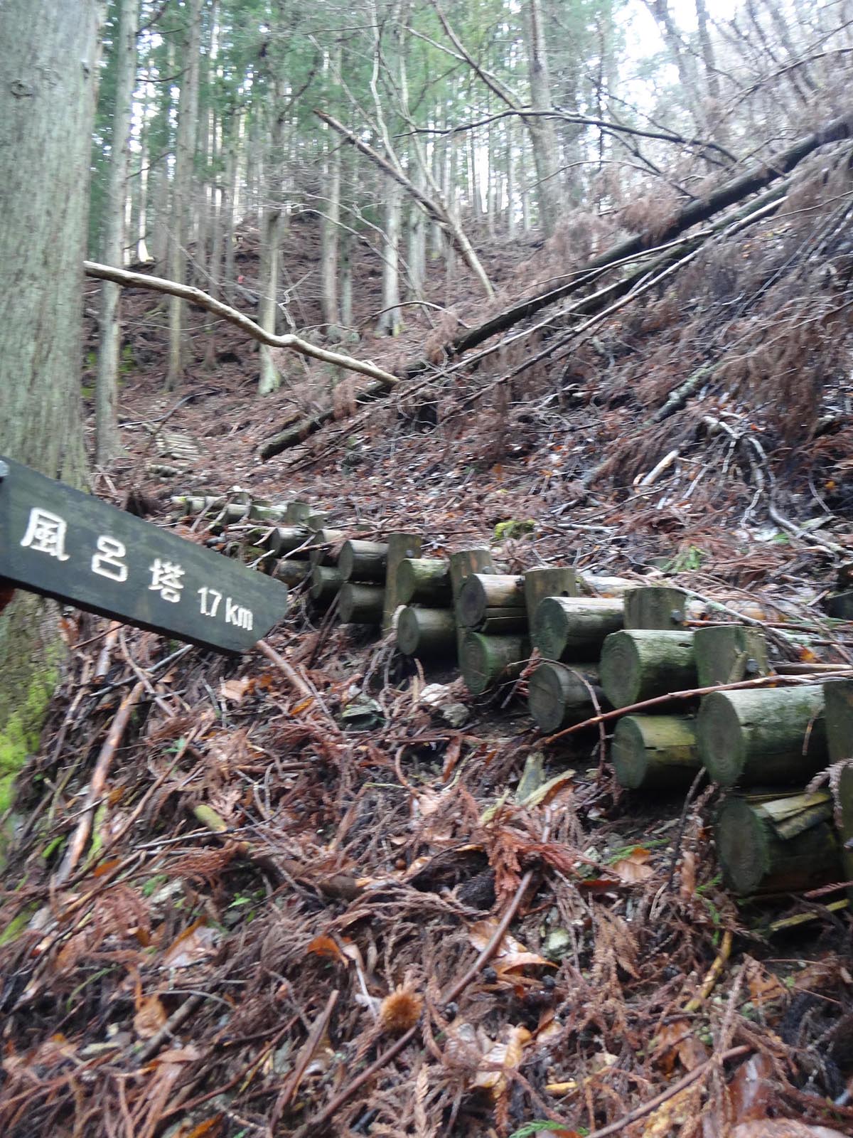 風呂塔から先は道が荒れ荒れ。 気の階段も朽ち果てているし、目印もあまりない。