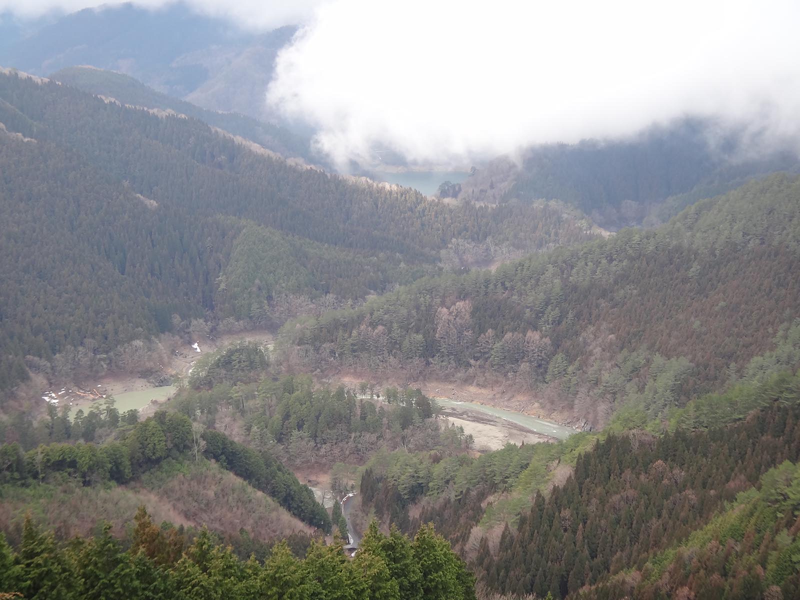 途中展望の良い場所があり、深淵が綺麗に見えた。 下界は晴れ、山の上は雲がかかっている。