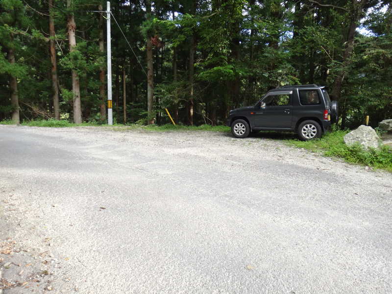 自分は、そこより30mくらい下がった場所に停めた。 別にどこに停めてもいいのだが、無理して奥まで行かないでいいかなと、歩く時間が数分延びても、登山で何時間も歩くので誤差だろうし、そもそも歩くために山に来ているので。