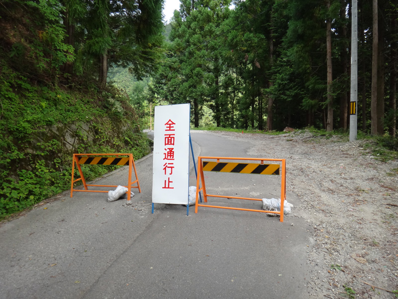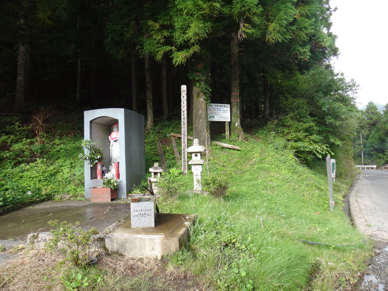 この細い県道を5kmほど走っていき、さらに脇道に入った奥が登山口になっている。