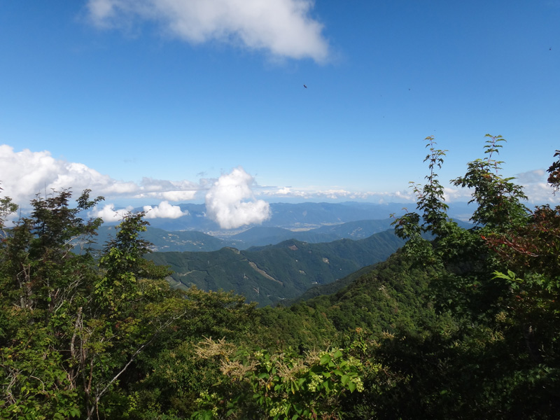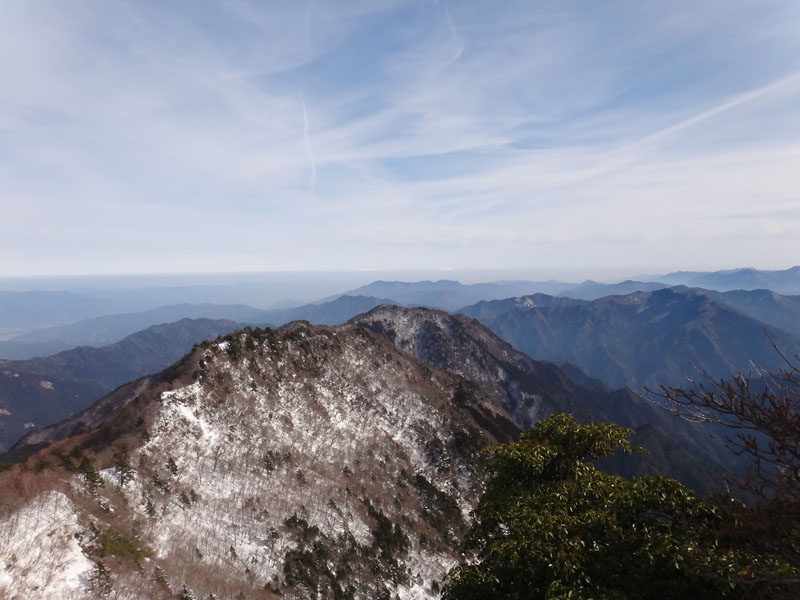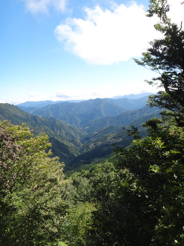 荷物をここに置いて、山頂へは空身で行ってきた。 東は矢筈山、南は剣山~天狗塚まで、南は吉野川流域まで見える、大パノラマだった。 山頂の景色を満喫して、荷物を置いた地点に戻る。
