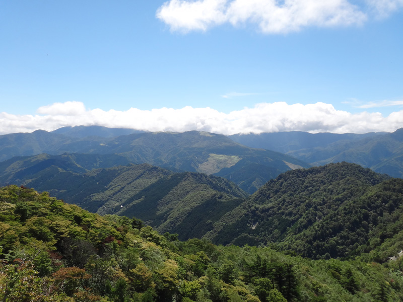 360度の大展望、かと思ったが、天狗塚~三嶺~剣山方面は雲に覆われて景色が見えない。