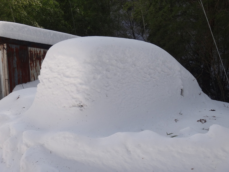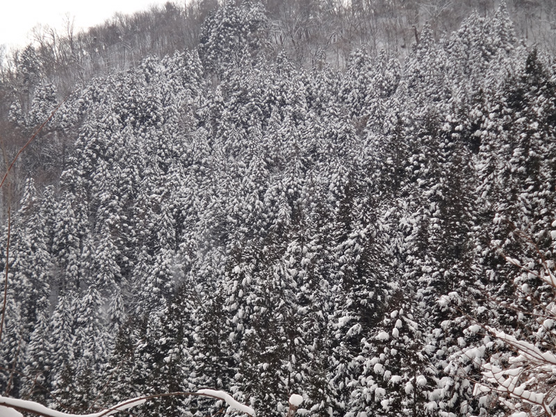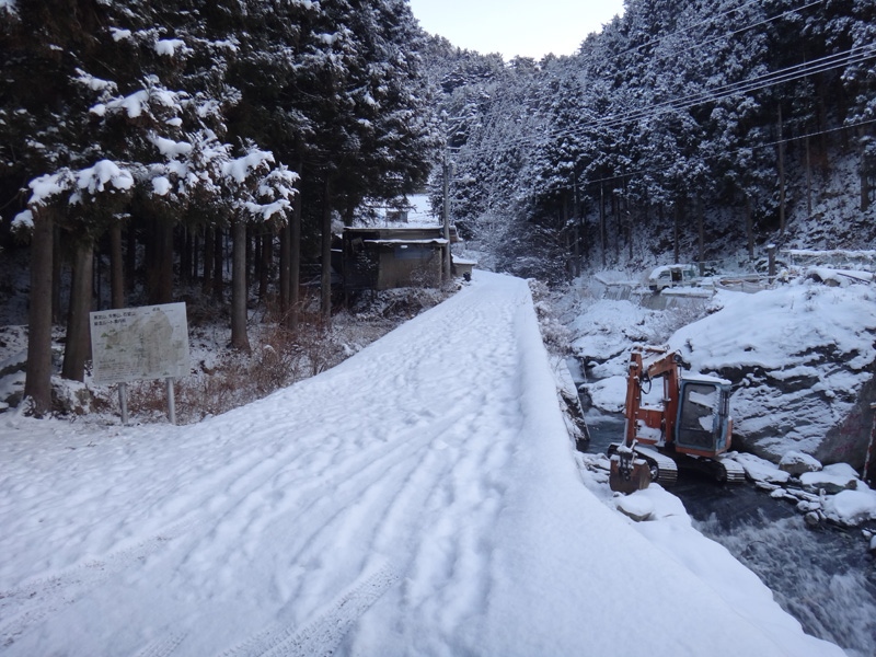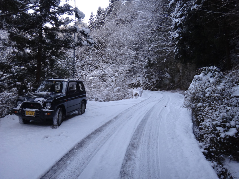 ここから先はいつも通りの光景だった。 あまり雪は積もっておらず。 国道438号線から黒笠山方面の県道に右折してからは雪の量が多くなってきた。
