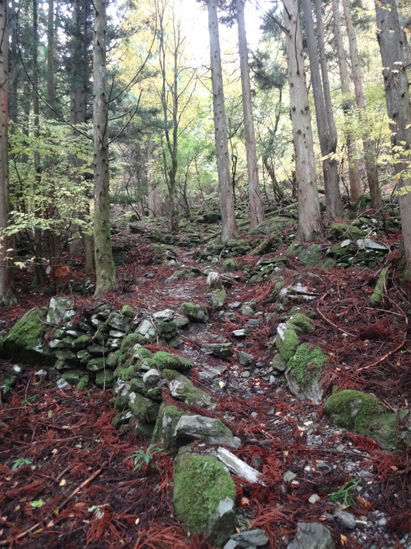 出だしは少し肌寒いなと思って、手袋をするか悩んだ。 川を渡った所の民家の裏から黒笠山への登山道に入り、しばらく急な上りが続く。 手は寒かったが、廃屋がある辺りまで歩いたら、手が冷たいのは落ち着いて、体も少しだけ暑くなってきた。