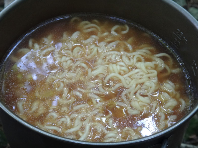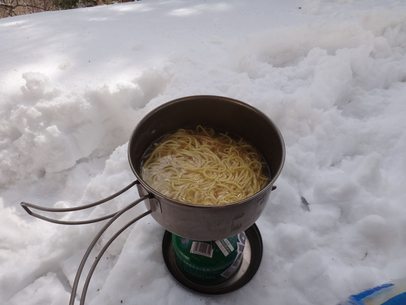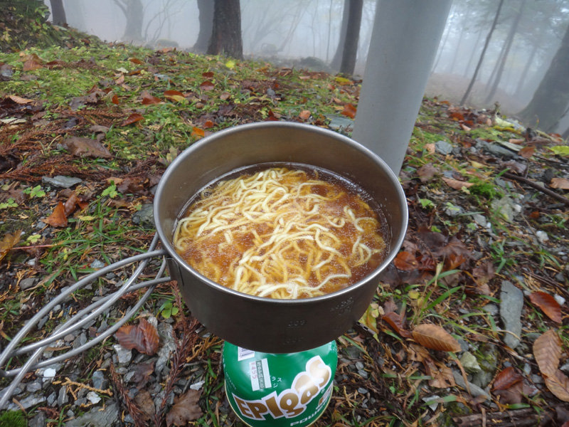黒笠神社前で、インスタントラーメンを作ってお昼ご飯を食べる。 こんな時間に下山するとは、一日がゆっくり使えるかもしれないな。