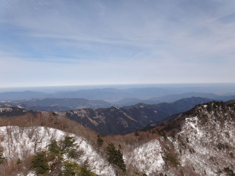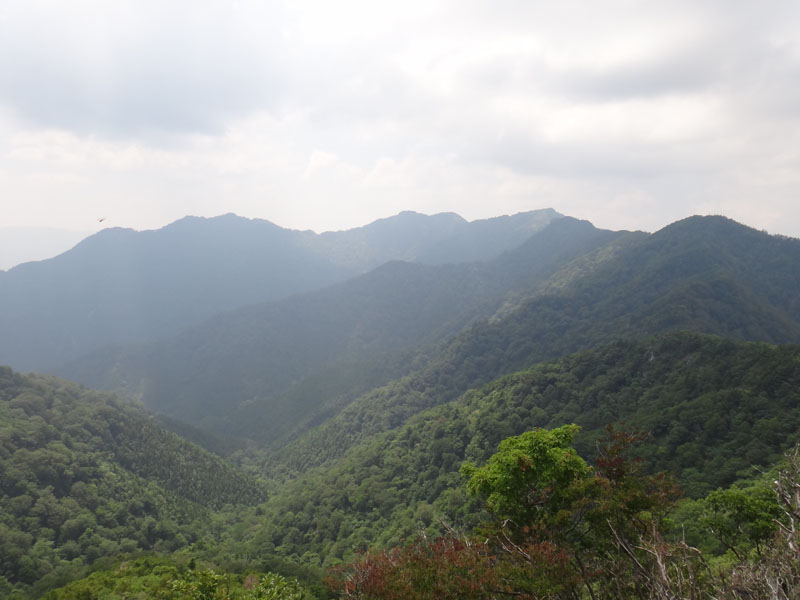 黒笠山はロープと鎖場を3箇所越えて、山頂に到着。 山頂からの景色は霞んでいてあまり綺麗じゃなかった……